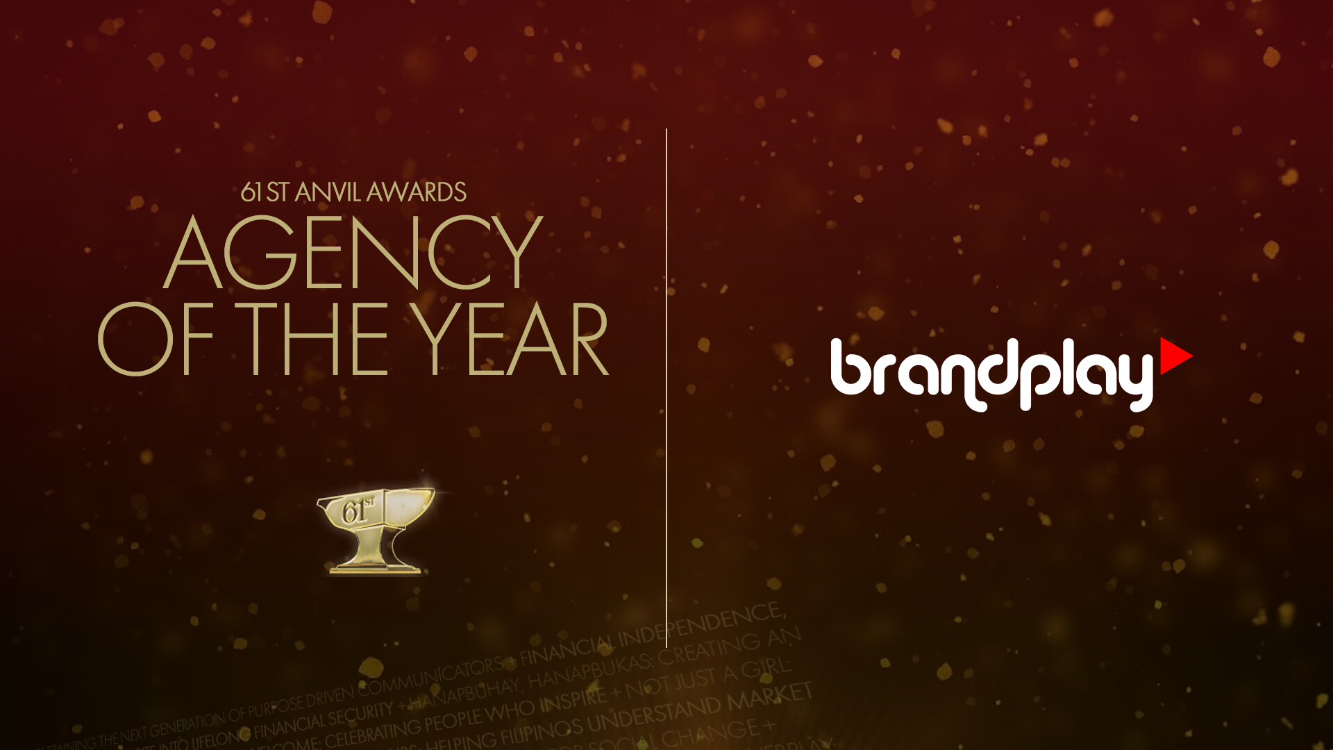 Brandplay, one of the agencies in PAGEONE Group, was named Agency of the Year at the 61st Anvil Awards of the Public Relations Society of the Philippines, after winning a total of 26 trophies across multiple categories.
